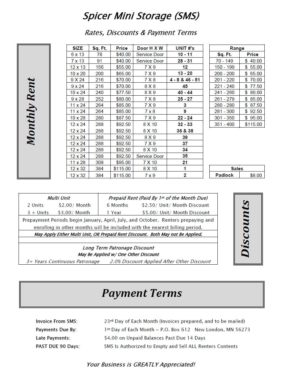 Sizes & Rates